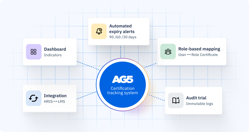 In practice, a platform serving regulated industries needs to do all three. An oil and gas company managing offshore qualifications needs employee certification records (OPITO competency), safety training tracking (H2S awareness, confined space, permit to work), and training records (SOP sign-offs, pre-job briefings). These are not separate systems. They are different views of the same underlying qualification data. AG5’s employee training tracking software unifies all three.