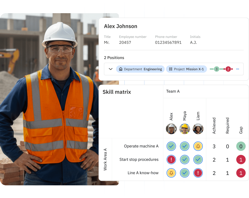 This type of software acts like a competency management system for construction teams. It stores information about each worker’s training, licenses, and skill levels, then gives managers the tools to match people to projects based on verified readiness.