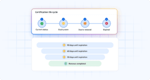 Track expiration dates. Monitor renewal requirements and send alerts before certifications lapse.