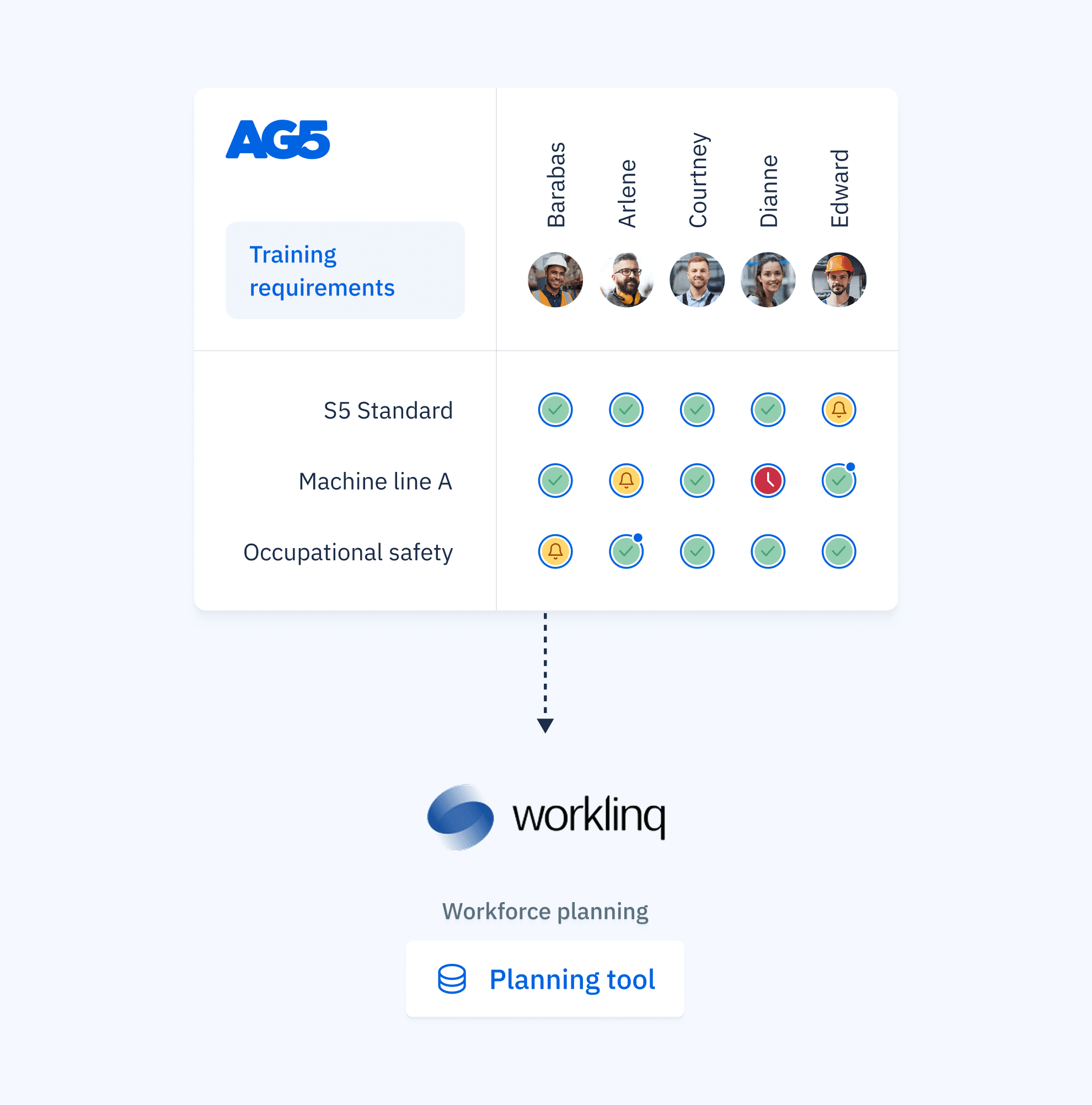 The AG5 + Worklinq integration ensures every task or shift is covered by employees with the right skills. Here’s what it enables: