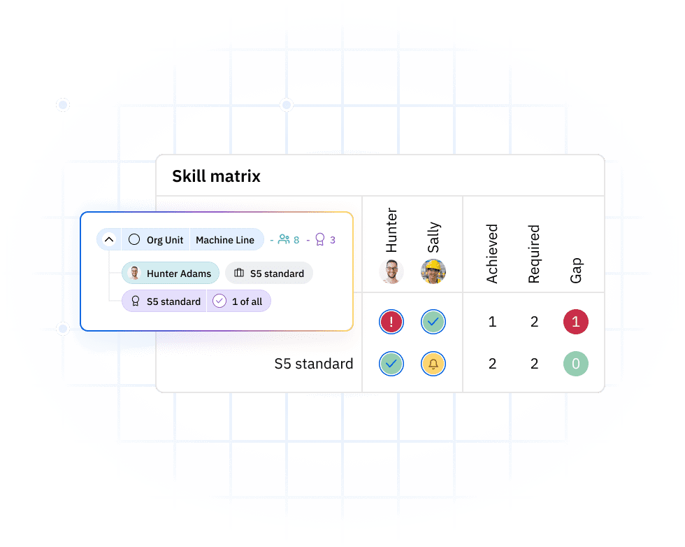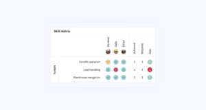 That’s where a skills matrix provides real value. It gives you a structured way to document who can perform which tasks at what level. As a result, you can staff shifts with confidence, spot training needs systematically, and keep compliance docs ready for audits, all while cutting the risk of production hiccups caused by skills gaps.