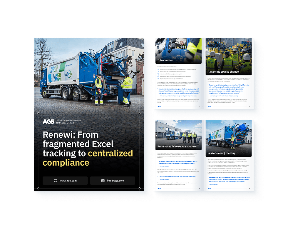 Renewi, a waste-to-product leader with 6,000+ employees across four countries, faced major compliance challenges due to fragmented Excel tracking. With nearly 900 job roles and hundreds of training requirements, audits became time-consuming and high-risk.